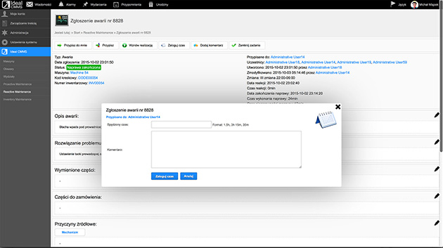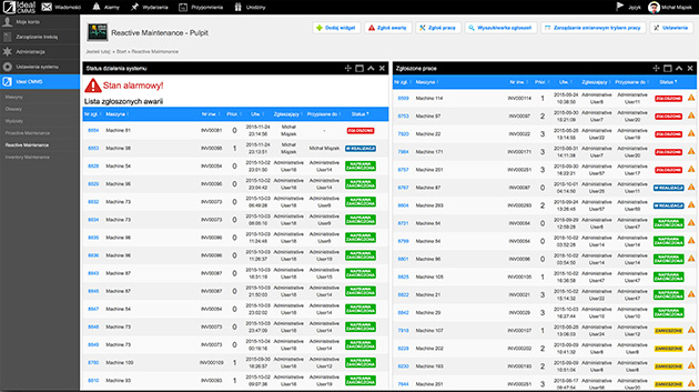 In a large organization, when it is necessary to effectively manage a park of 200 or more machines, what counts is proper planning, execution and supervision of periodic work and skilful allocation of resources to emerging tasks. Who is able to make this difficult art can offer the highest level of service and at the same time offer reasonable prices. CMMS software is used to actively manage resources, tasks and warehouses.